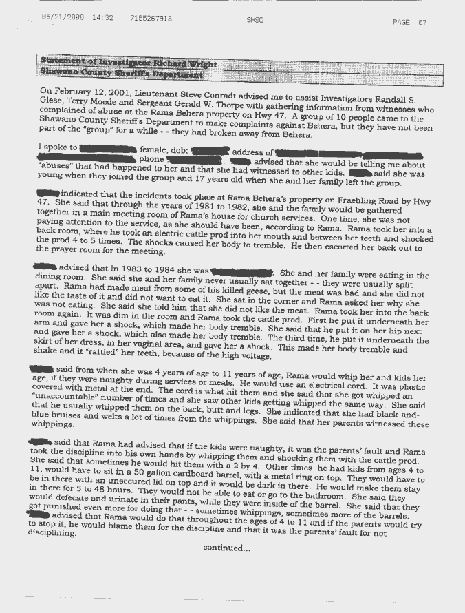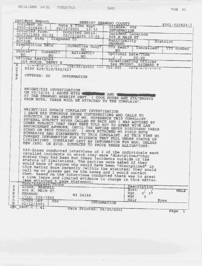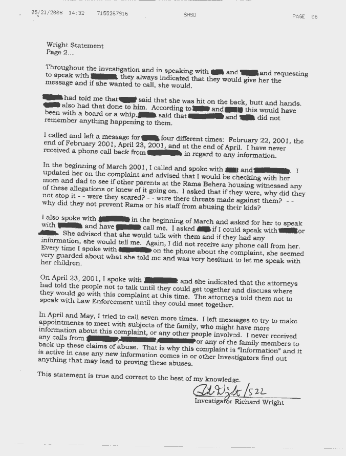Shawano County Sherriff's Department - Rama Behera Incidents Complaint