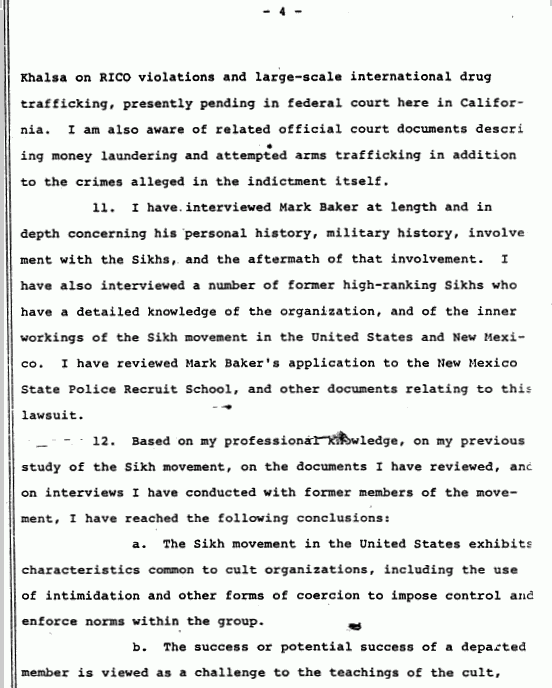 Pages 4 and 5 of Affidavit of Richard Ofshe, Ph.D, regarding 3HO