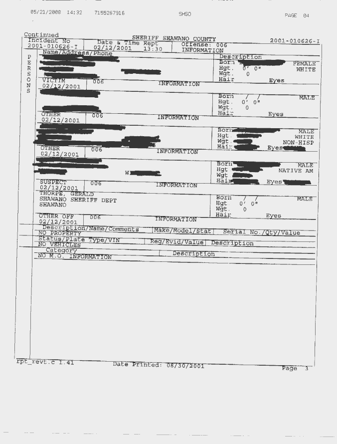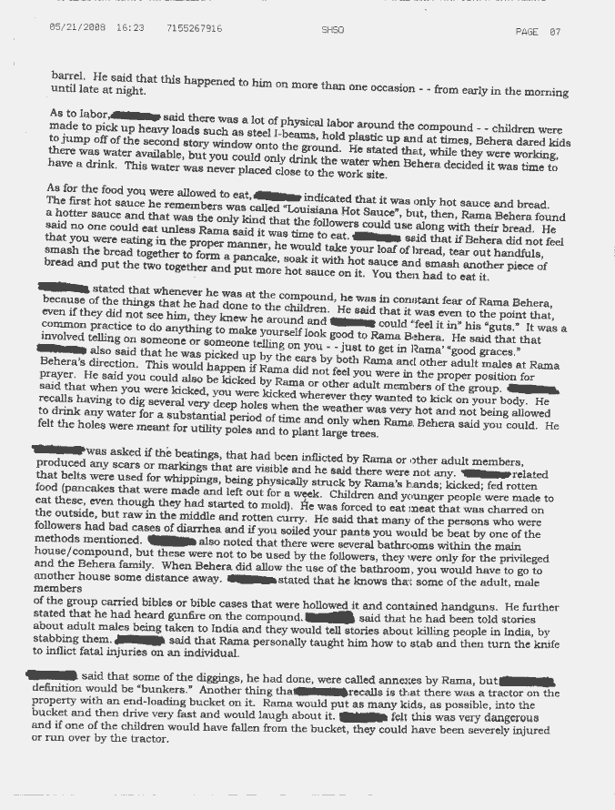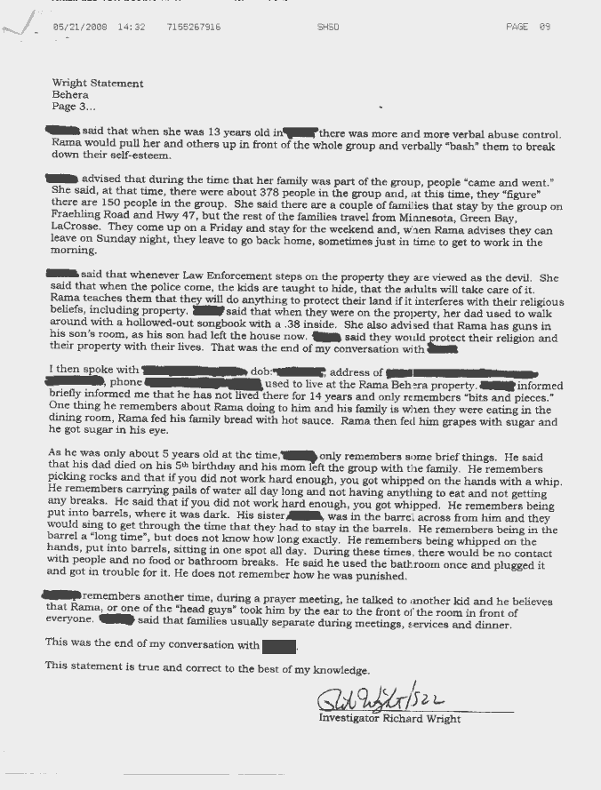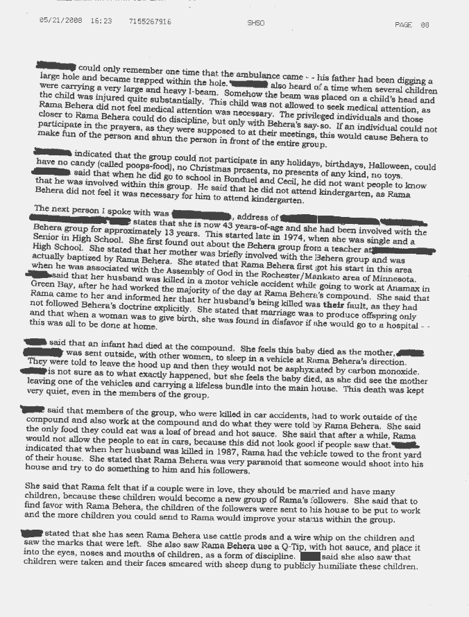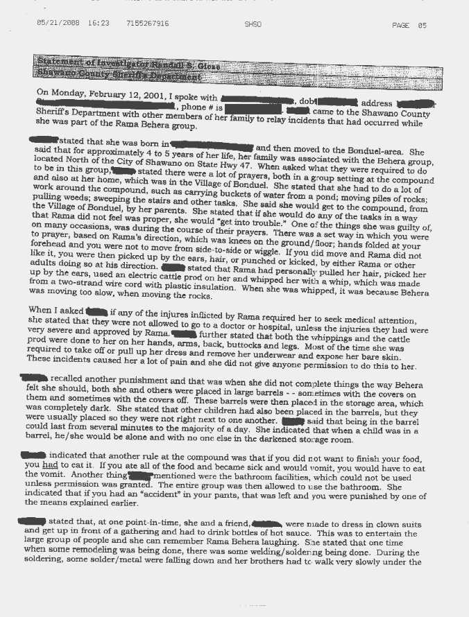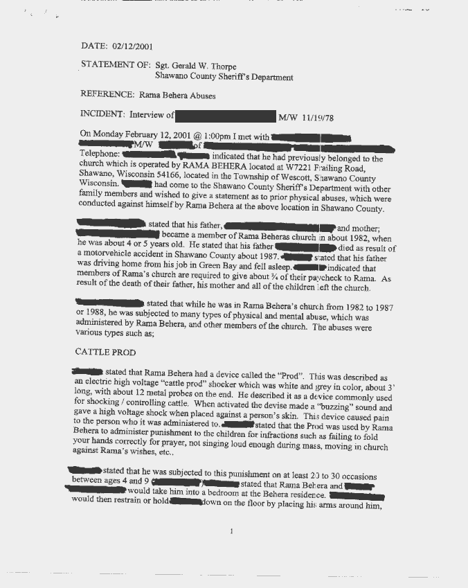 Shawano County Sherriff's Department - Rama Behera Incidents Complaint