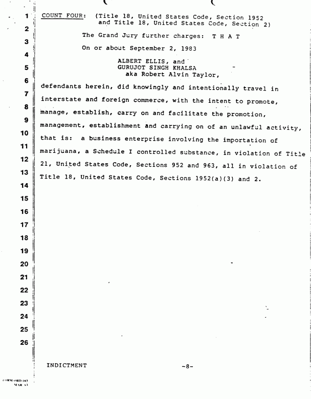 Indictment Count 4: Interstate Commerce for Illegal Activity: Albert Ellis and Gurojot Singh Khalsa