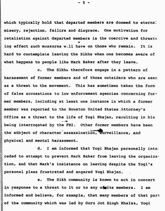 Pages 4 and 5 of Affidavit of Richard Ofshe, Ph.D, regarding 3HO